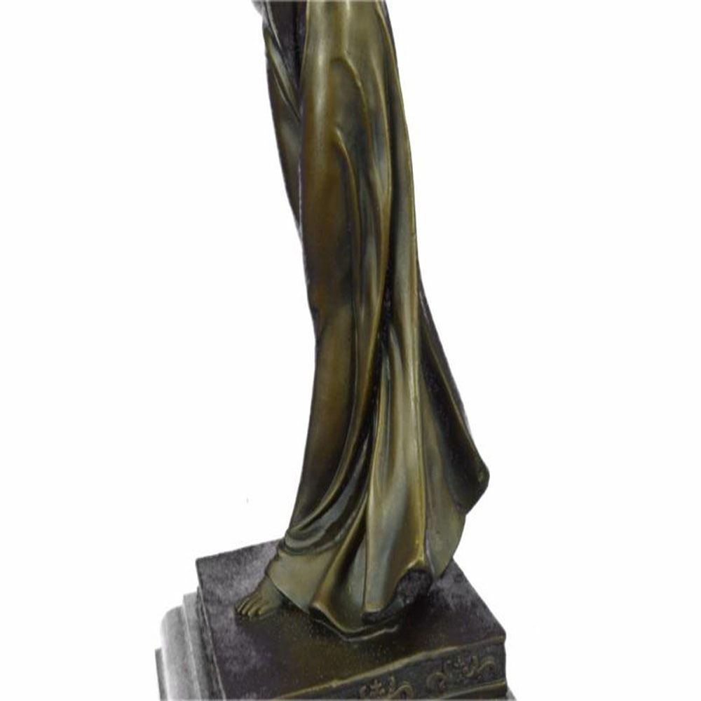Athena is one of the most benevolent Greek goddesses. She is the quintessential career woman of the goddesses unswayed by Aphrodite spells. She is strong, loyal, and possess an elegant beauty. She is depicted here in her helmet and long robes holding her spear. Athena was known as the Goddess of War serving as a great mediator and planner. This tall sculpture is perfect to inspire female strength and achievement. The sculpture was crafted using the lost wax method and it stands on a marble base. Bronze Dimensions with Marble Base: Height 19 X Width 11 inches. Weight: 13 LBS.