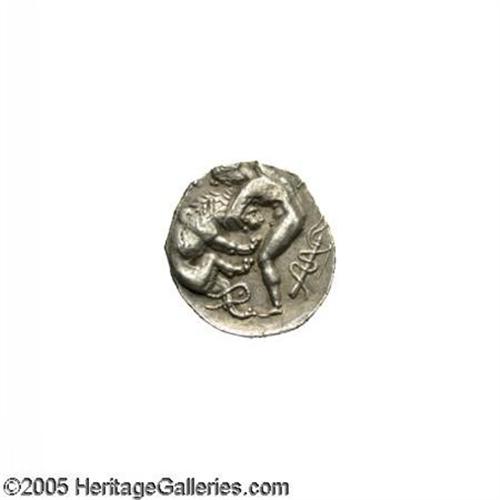 <B>Paeonian Kingdom. Lykkeios.</B></I> 356-335 B.C. AR tetradrachm (23 mm, 12.63 g). Laureate head of Zeus right / Herakles strangling the Nemean lion, a bow and quiver behind him. SNG ANS 1019; Paeonian Hoard 63 (same obverse die). VF.
