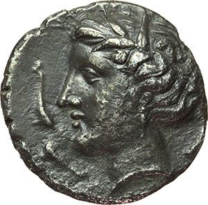 Greek. Punic Sicily. Tetradrachm, circa 320-300 BC. Obv.: Head of Persefone left. Four dolphins around. Rev.: Head of horse left. Palm tree behind. Punic letter M below. Cfr. Jenkins, SNR 56, 244. AG. g. 15.90 mm. 25.00 Good VF+/About EF. Beautiful grey old cabinet tone. Mondo Greco. Sicilia Punica. Tetradracma, ca. 320-300 a.C. D/ Testa di Persefone a sinistra. Intorno, quattro delfini. R/ Testa di cavallo a sinistra. Dietro, albero di palma. Sotto, lettera punica M. Cfr. Jenkins, SNR 56, 244. AG. g. 15.90 mm. 25.00 Bel BB+/qSPL. Bella patina grigia di monetiere.