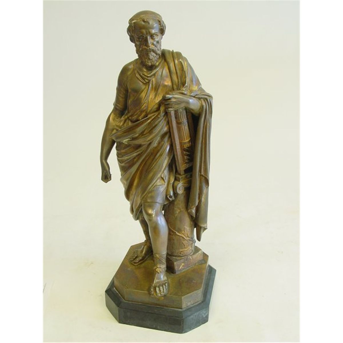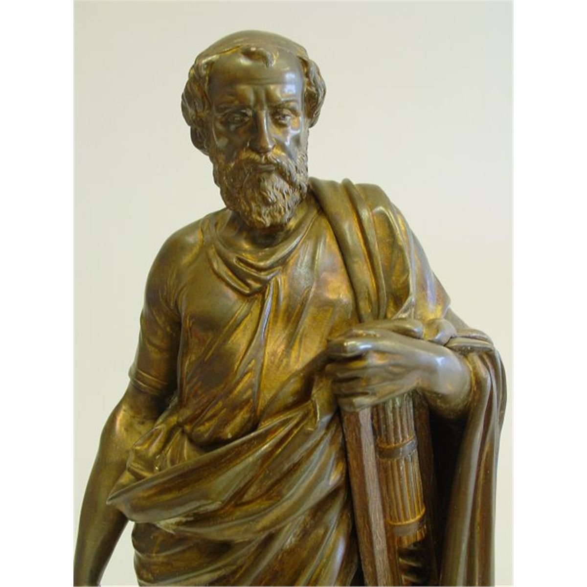 Standing Greek Scholar, bronze sculpture, unsigned, 17" h x 7" w, on marble base 18 1/2" overall