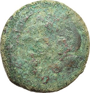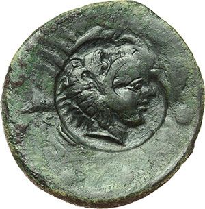 Greek. Sicily. Hemilitron, 425-406 B.C. Obv.: Eagle standing right on hare. Rev.: Crab. Countermark with head of Herakles right. Cfr. SNG ANS 1076. AE. g. 19.16 mm. 28.00 R. Fair. Countermarked after 406 BC. Mondo Greco. Sicilia. Akragas. Emilitra, 425-406 a.C. D/ Aquila stante a destra su lepre. R/ Granchio. Nitida contromarca con testa di Eracle a destra. Cfr. SNG ANS 1076. AE. g. 19.16 mm. 28.00 R. B. Contromarcata, come la successiva, dopo il 406 a.C. in seguito alla caduta della città per mano dei Cartaginesi.