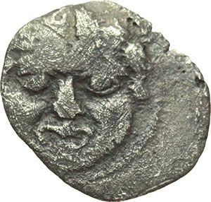 Greek. Sicily. Motya. Litra, 415-397 BC. Obv.: Head of Gorgoneion facing. Rev.: Palm tree. SNG ANS 503. Jenkins tav. 23,4 a-b. AG. g. 0.64 mm. 13.00 RR. Rare. F/VF. Mondo Greco. Sicilia. Motya. Litra, 415-397 a.C. D/ Testa di Gorgone di fronte. R/ Albero di palma. A sinistra e a destra, lettere puniche. SNG ANS 503. Jenkins tav. 23,4 a-b. AG. g. 0.64 mm. 13.00 RR. Rara. MB/BB.