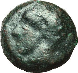Greek. Sicily. Selinunte. Cast trias, circa 440-425 BC. Obv.: Head of nymph left and three pellets. Rev.: Leaf and three pellets. TV 312. AE. g. 9.47 mm. 19.00 RR. VF/EF. Very rare. A very fine example for this issue. Mondo Greco. Sicilia. Selinunte. Trias fuso, ca. 440-425 a.C. D/ Testa della ninfa a sinistra e tre globetti. R/ Foglia e tre globetti. TV 312. AE. g. 9.47 mm. 19.00 RR. BB/SPL. Molto raro e di qualità eccellente per il tipo.