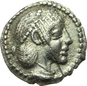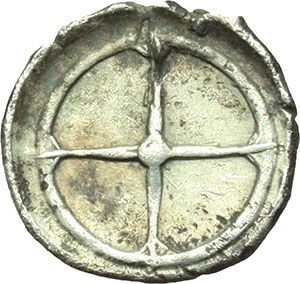 Greek. Sicily. Syracuse. Obol, circa 480-470 B.C. Obv.: Diademed head of Arethusa right. Rev.: Wheel with four-spokes. SNG ANS 118. AG. g. 0.65 mm. 10.00 Minor test cut (?) on Obv. EF. Mondo Greco. Sicilia. Siracusa. Obolo, ca. 480-470 a.C. D/ Testa diademata di Arethusa a destra. R/ Ruota a quattro raggi. SNG ANS 118. AG. g. 0.65 mm. 10.00 Tacca di saggio (?) al D/. SPL.