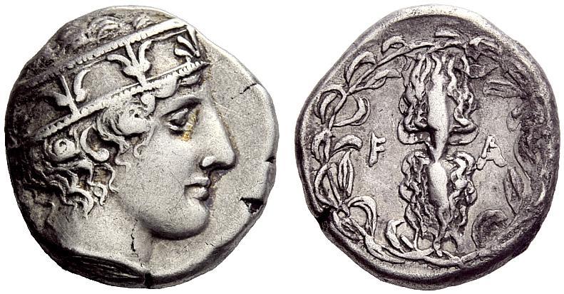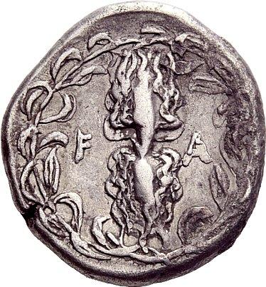 Greek coins, Elis, Stater, Hera ca. 400, 95th Olympiad, AR 12.08 g. Head of Hera r., wearing stephane ornamented with palmettes. Rev. F – A Flaming thunderbolt; all within olive wreath. Seltman 264. BCD Olympia 88. Rare. Lightly toned and good very fine