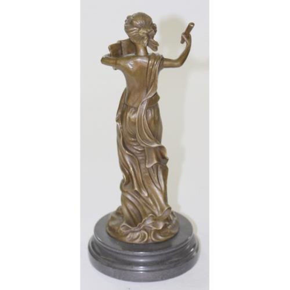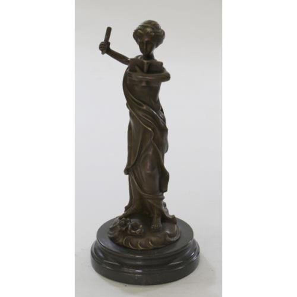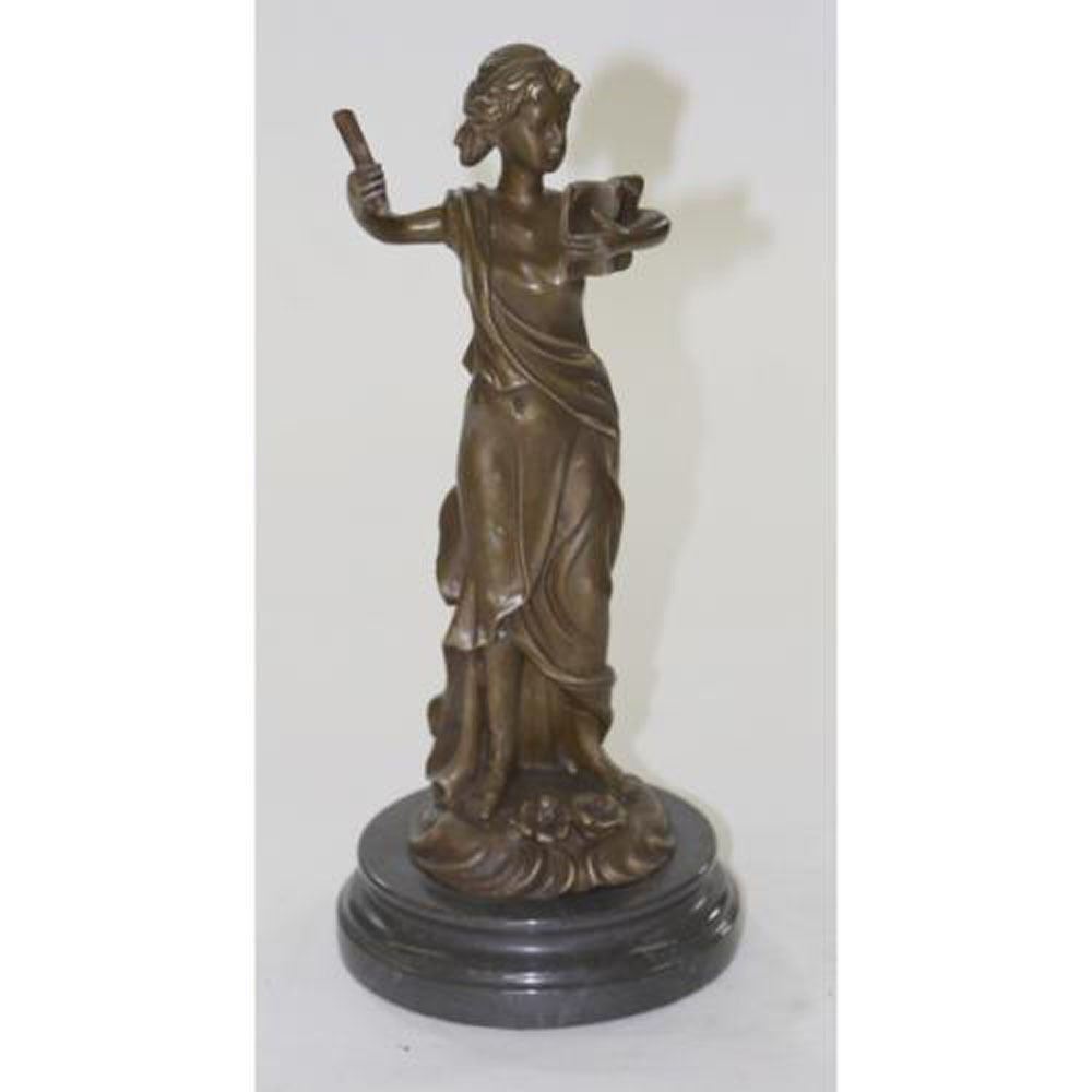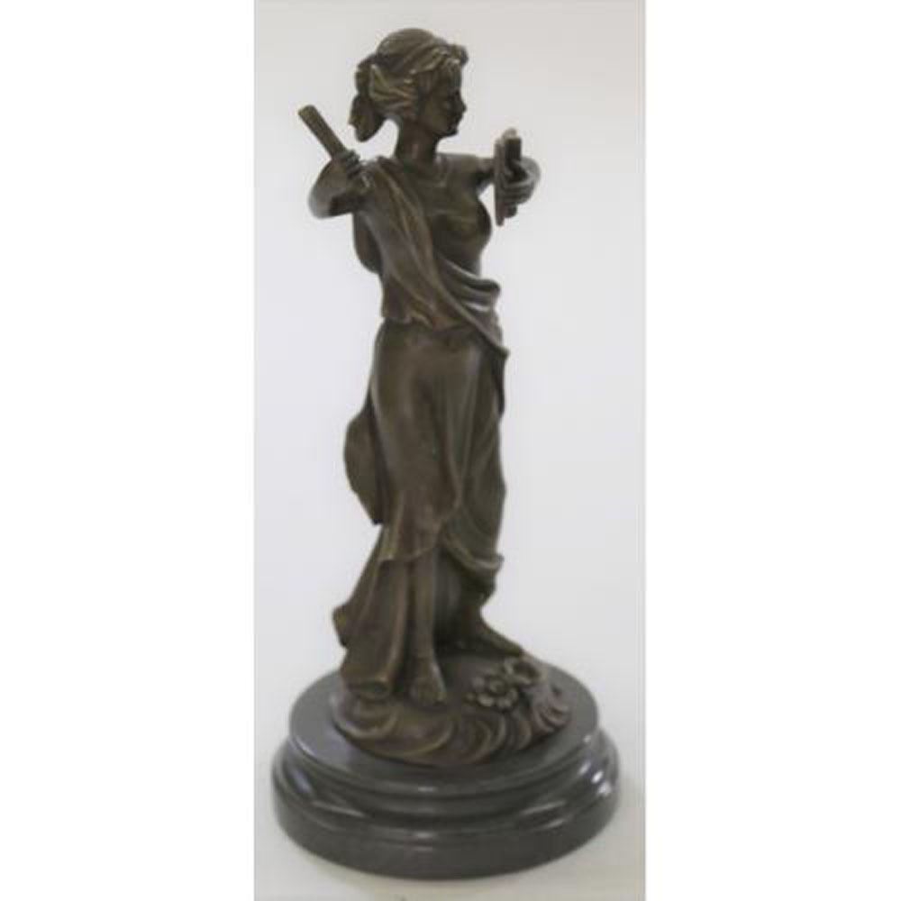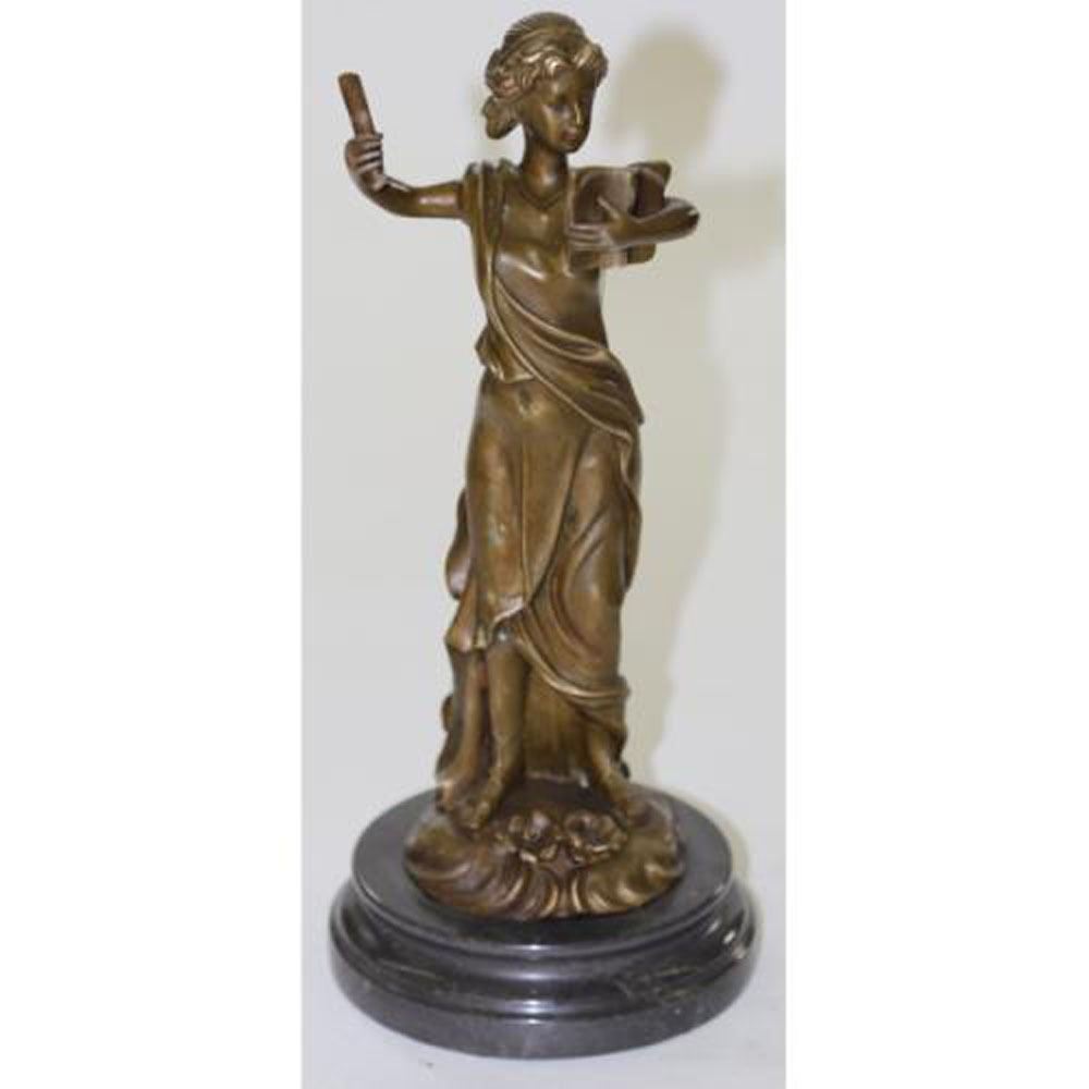 The Greek goddess Athena embodied wisdom, courage, strategy, justice, law, the arts, and more. A shrewd companion of heroes, she was the goddess of heroic endeavor. This Bronze Athena Goddess of Wisdom and War makes a stunning gift. Crafted from Hot cast bronze, this Greek goddess statue is hand painted to bring out every detail. The Bronze Athena Goddess of Wisdom and War adds a classical touch to any room and is mounted upon a marble base. Bronze Dimensions with Marble Base: Height 14 X Width 6 Inches. Weight: 10 LBS.