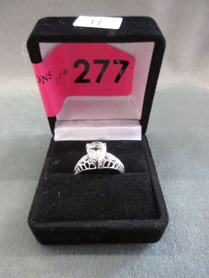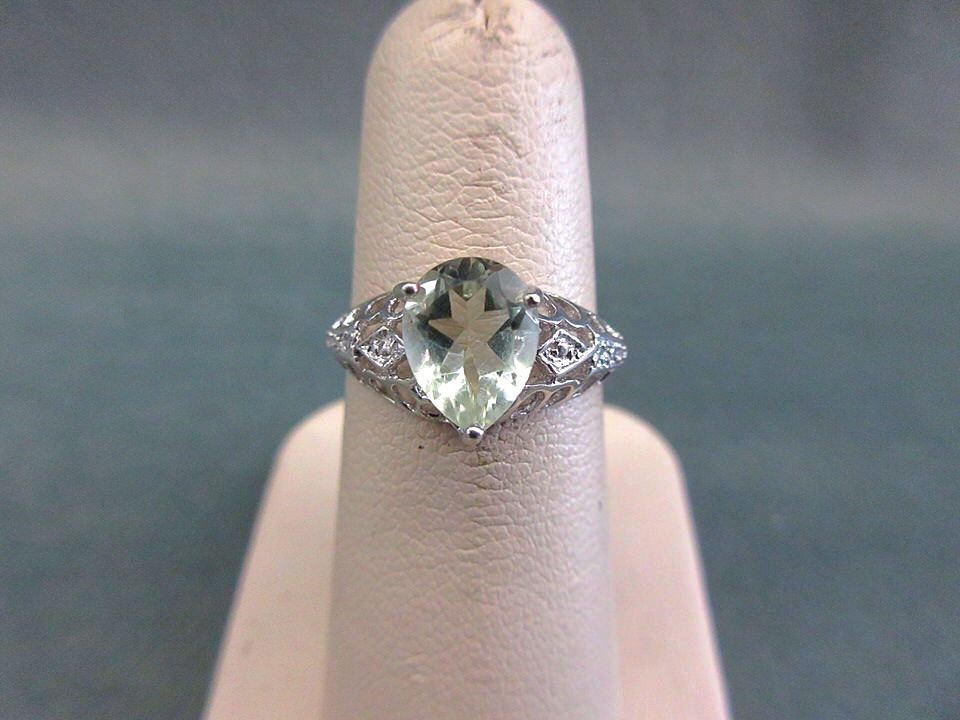 Pear-cut. Filigree band. 2 Diamonds. Sterling Silver. Retail Value $430