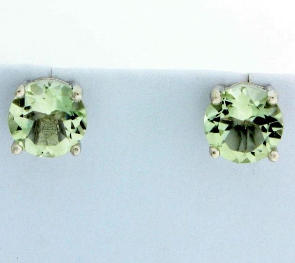 The 8mm round green amethyst gemstones are set in platinum over sterling silver. 2.0g