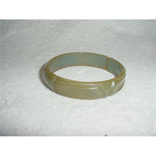 <tr><td>Title:Green Bakelite Carved Bracelet</td></tr>