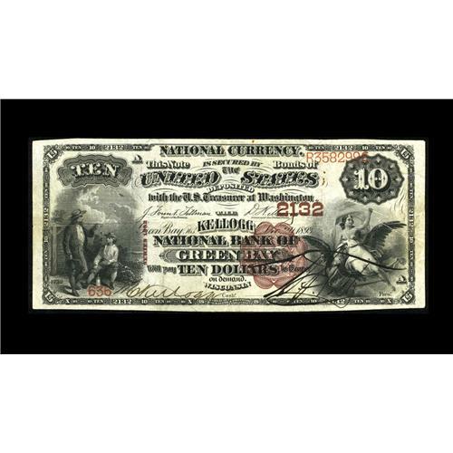 Green Bay, WI - $10 1882 Brown Back Fr. 487 The Kellogg Green Bay, WI