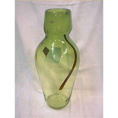 Vase is a pretty shade of green with a brown design made by Blenko Glass, Milton W.Va. This vase measures 19.5 inches high. This is a new vase but it does have sliver out of the brown design that apparently occurred when it was made, other than that it is in fine condition.