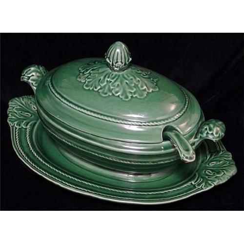 <tr><td>Title:Green Ceramic Soup Tureen, Underplate and Ladle</td></tr>