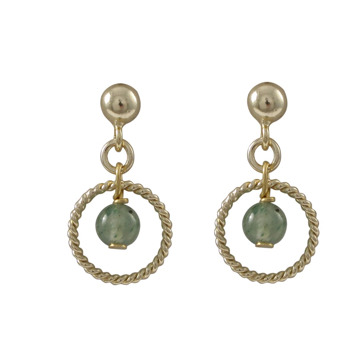 Green Chalcedony 4Mm Semi Precious Ball In 10Mm Braided Ring, On Gold Filled Ball Post Earrings, 0.75"