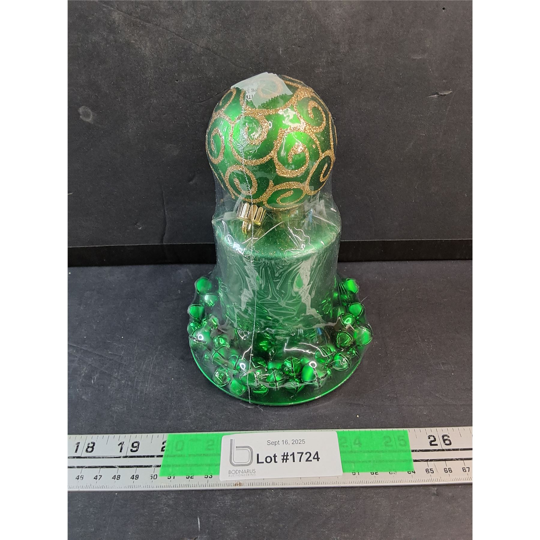 Green Christmas Candle with Bells and Christmas Tree Ornament - Sealed