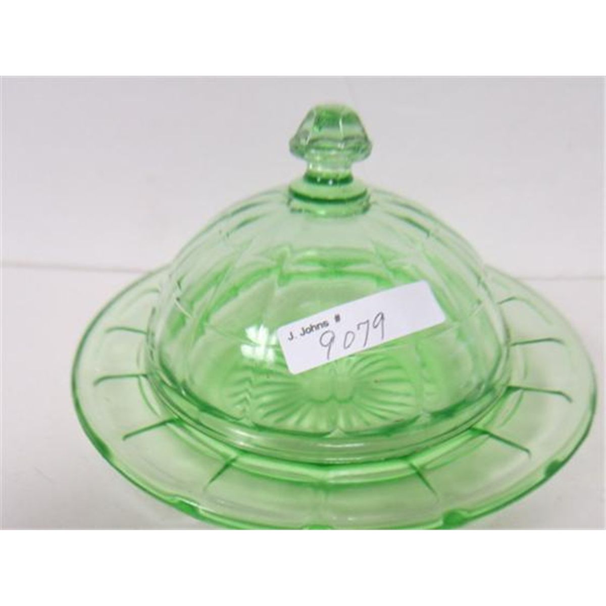 Green Colonial Block butter dish with lid--round shape