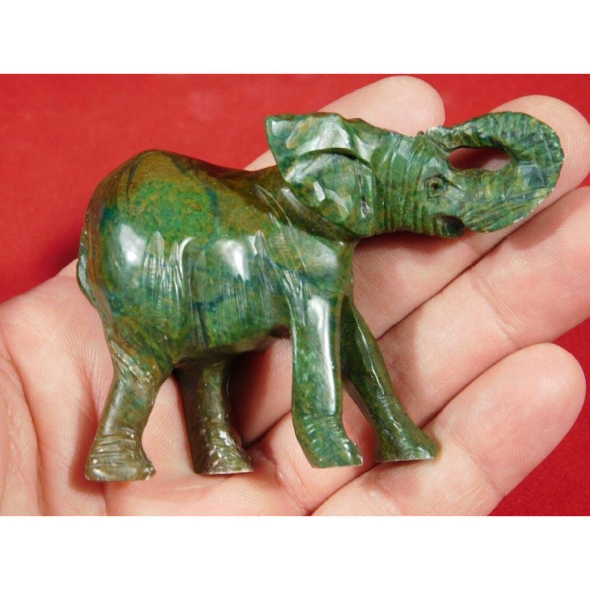 Deep green verdite carving, figurine, in the form of an elephant. Crafted by artisans in the Democratic Republic of Congo. 84.9 grams. 3 1/8".