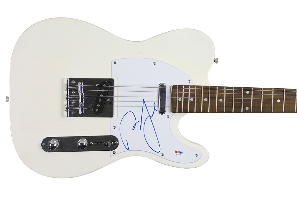 Cream-colored Stedman Pro ‘telecaster-style’ electric guitar, signed on the white pickguard in blue felt tip. In fine condition, with a PSA/DNA authentication label affixed to pickguard. Accompanied by a certificate of authenticity from PSA/DNA. Oversized.