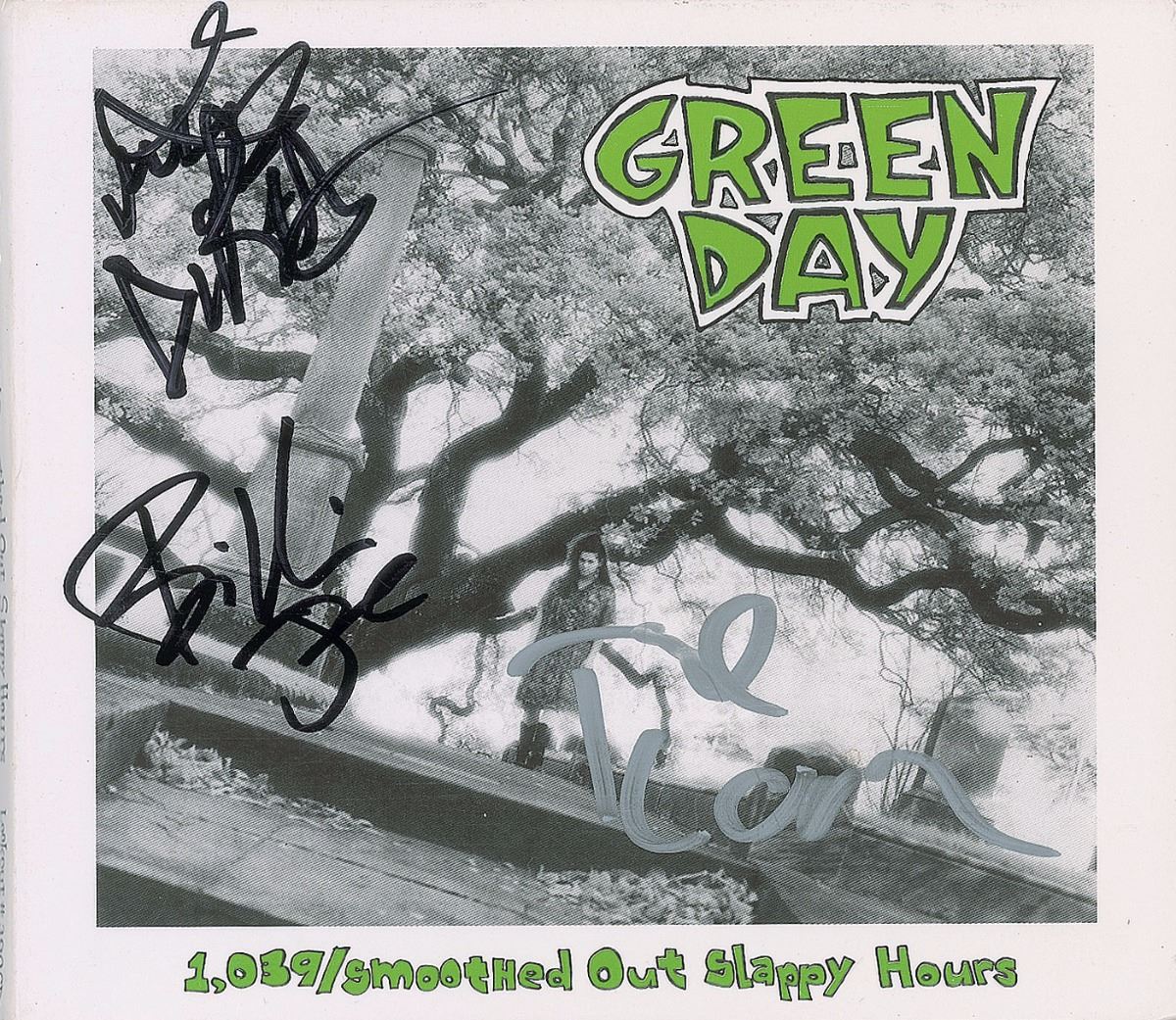1039/Smoothed Out Slappy Hours CD signed on the front cover in black felt tip, “Billie Joe” and “Mike Dirnt,” and in silver ink, “Tre Cool.” In fine condition. The CD is included.