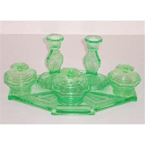 <tr><td>Title:Green Depression Glass 9 Pc. Vanity Set</td></tr>