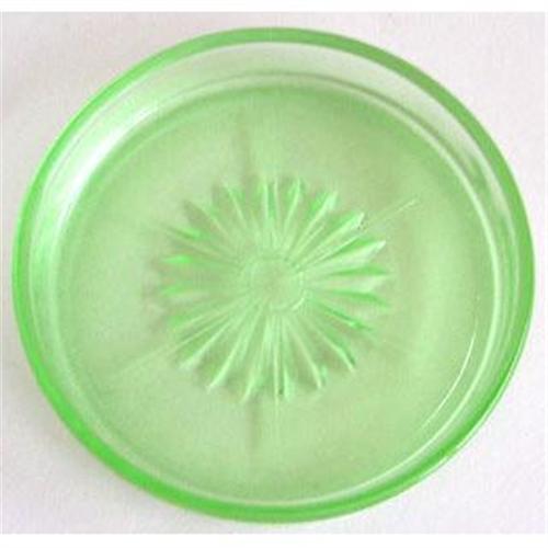 This set of six gorgeous Hazel Atlas green Depression Glass 'Daisy' coasters have a diameter of 3 1/4". They are shown on pg 118 in Hazel Weatherman - Colored Glass of the Depression Era Vol 2. They glow under blacklight, and are all in excellent condition.