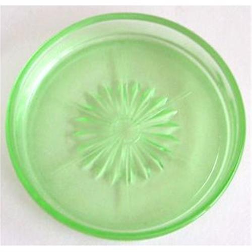 This set of six gorgeous Hazel Atlas green Depression Glass Daisy coasters have a diameter of 3 1/4 inches. They are shown on pg 118 in Hazel Weatherman - Colored Glass of the Depression Era Vol 2. They glow under blacklight, and are all in excellent condition.