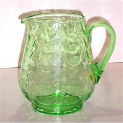 <tr><td>Title:Green Depression Glass Drape Loop Optic Pitcher</td></tr>