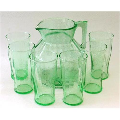 <tr><td>Title:Green Depression Glass Pitcher and Tumbler Set</td></tr>