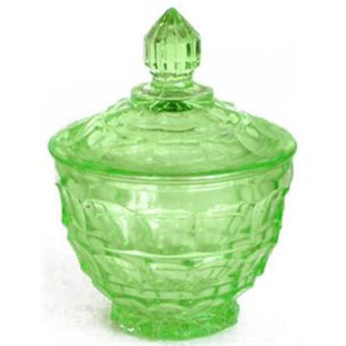 <tr><td>Title:Green Depression Glass Vanity Jar</td></tr>