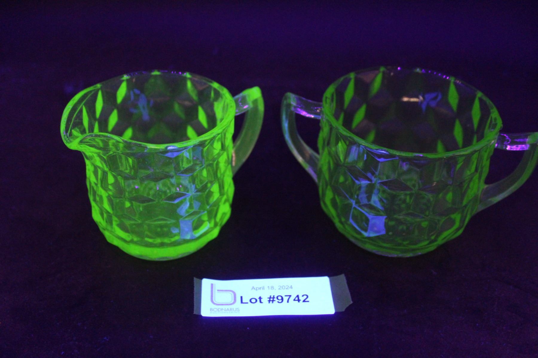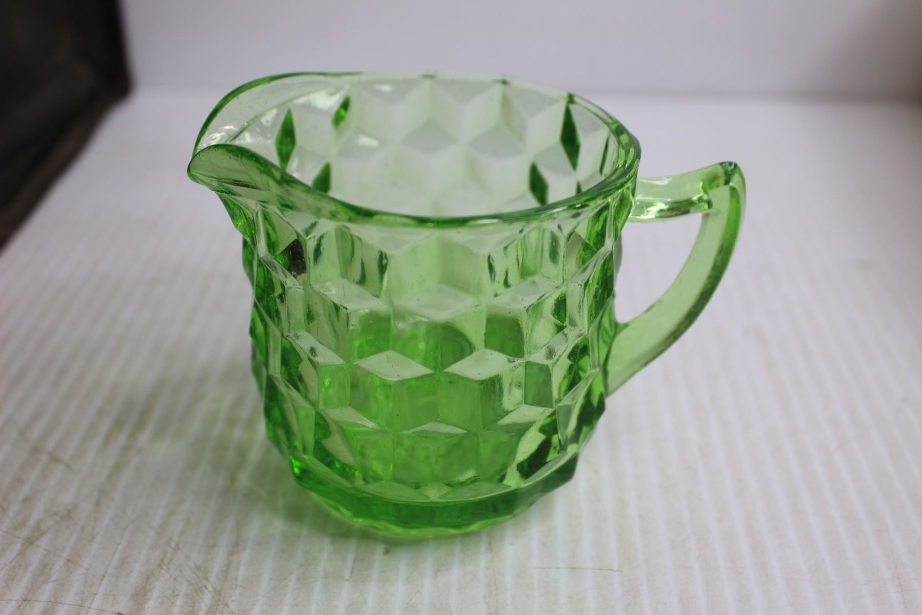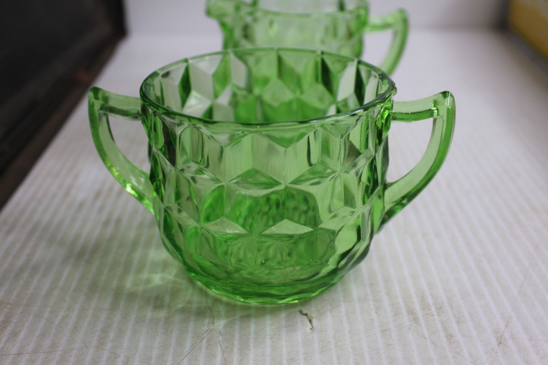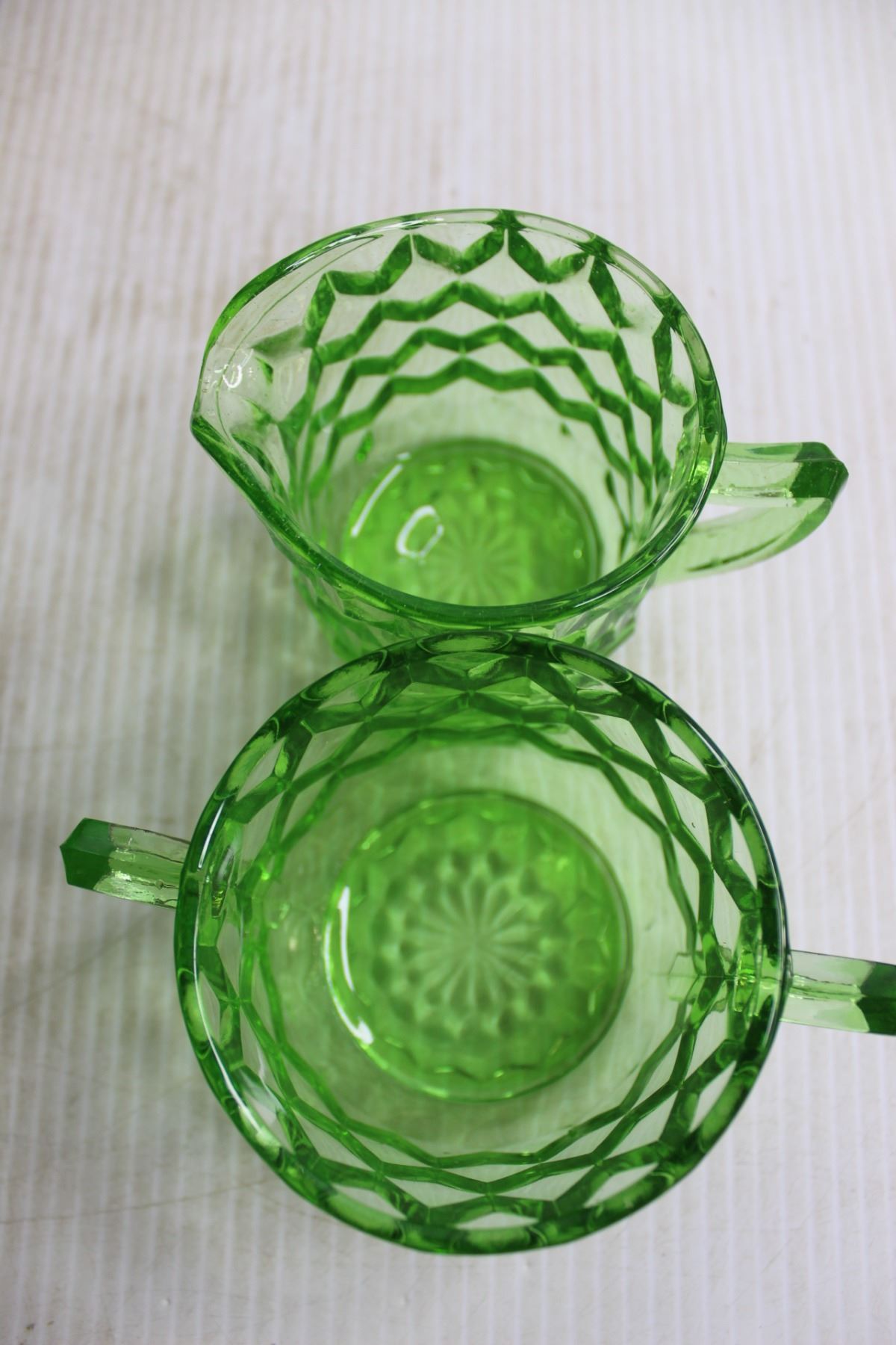 Green Depression Jeannette Windsor Uranium Glass Cream and Sugar Set