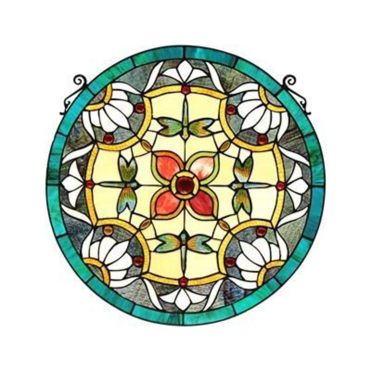 Green Dragonfly stained art glass hanging panel, with over 140 pieces of stained art glass & 8 glass beads, wrapped in copper foil. Comes with hanging chain. 21" X 20".Â