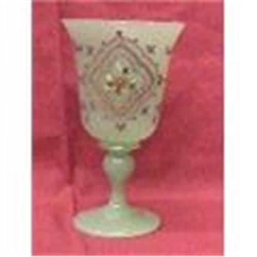 This is A very beautiful Green Opaline Goblet has been decorated with Enameled paint in very good condition. H:6"- W: on top 3.1/2"- W: on base2.1/2".