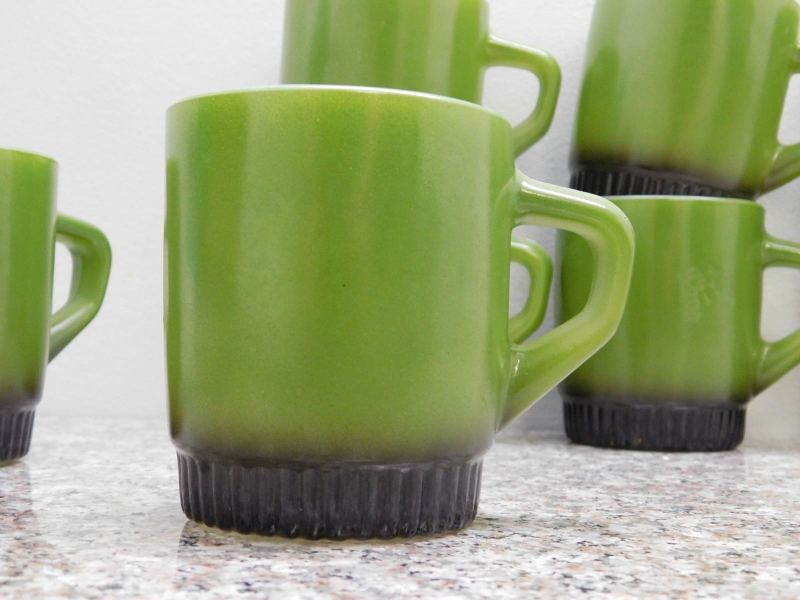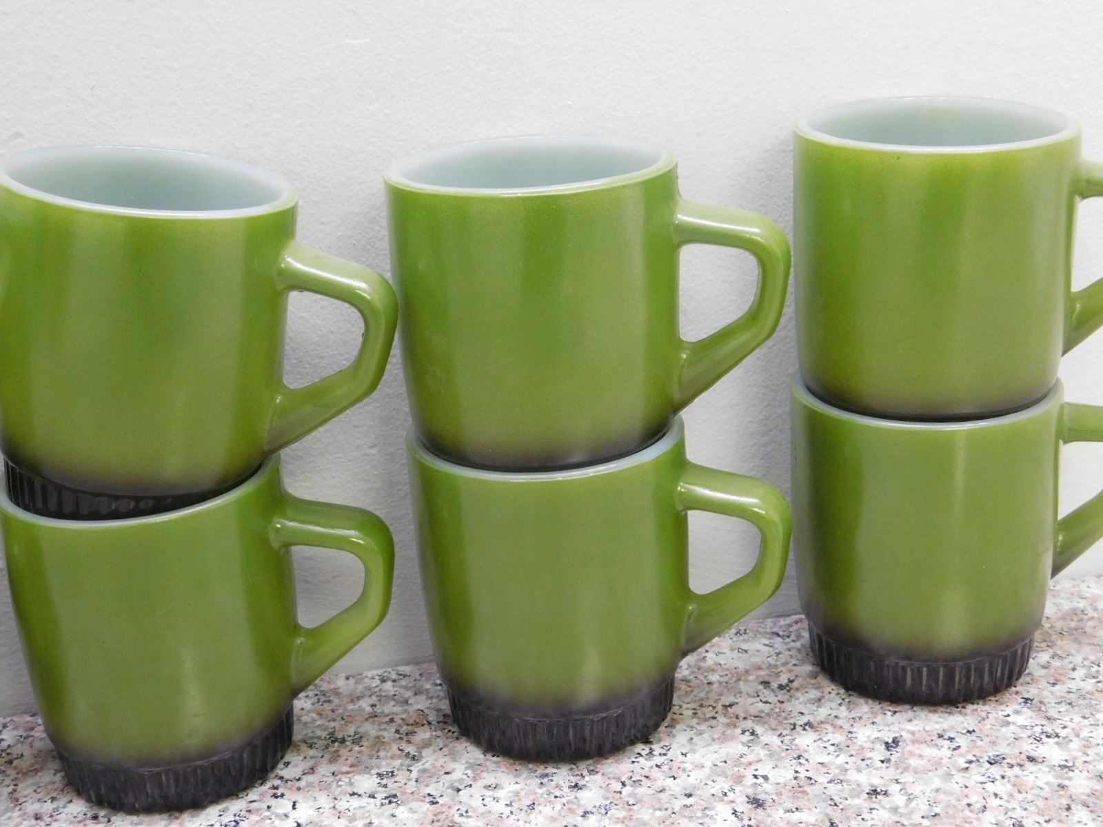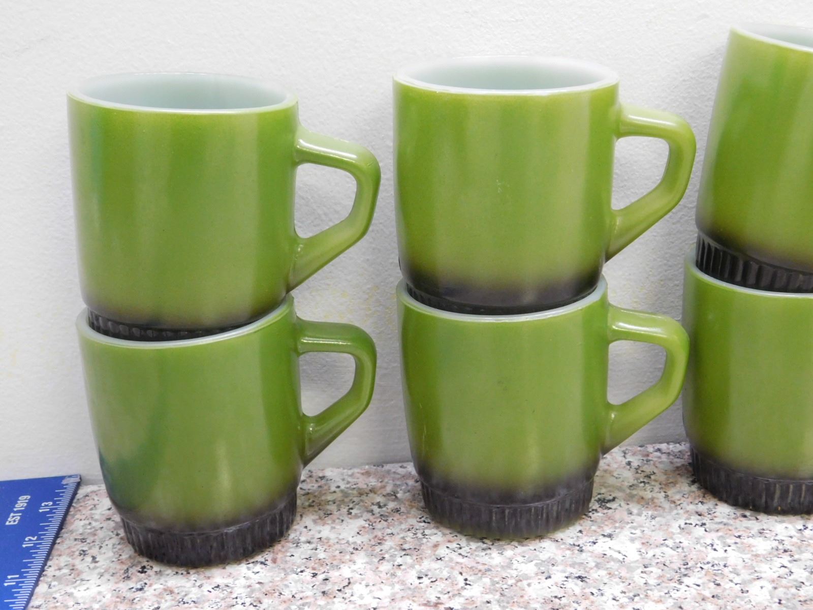 Green Fire King Mugs Set of 10 Vintage Mid Century