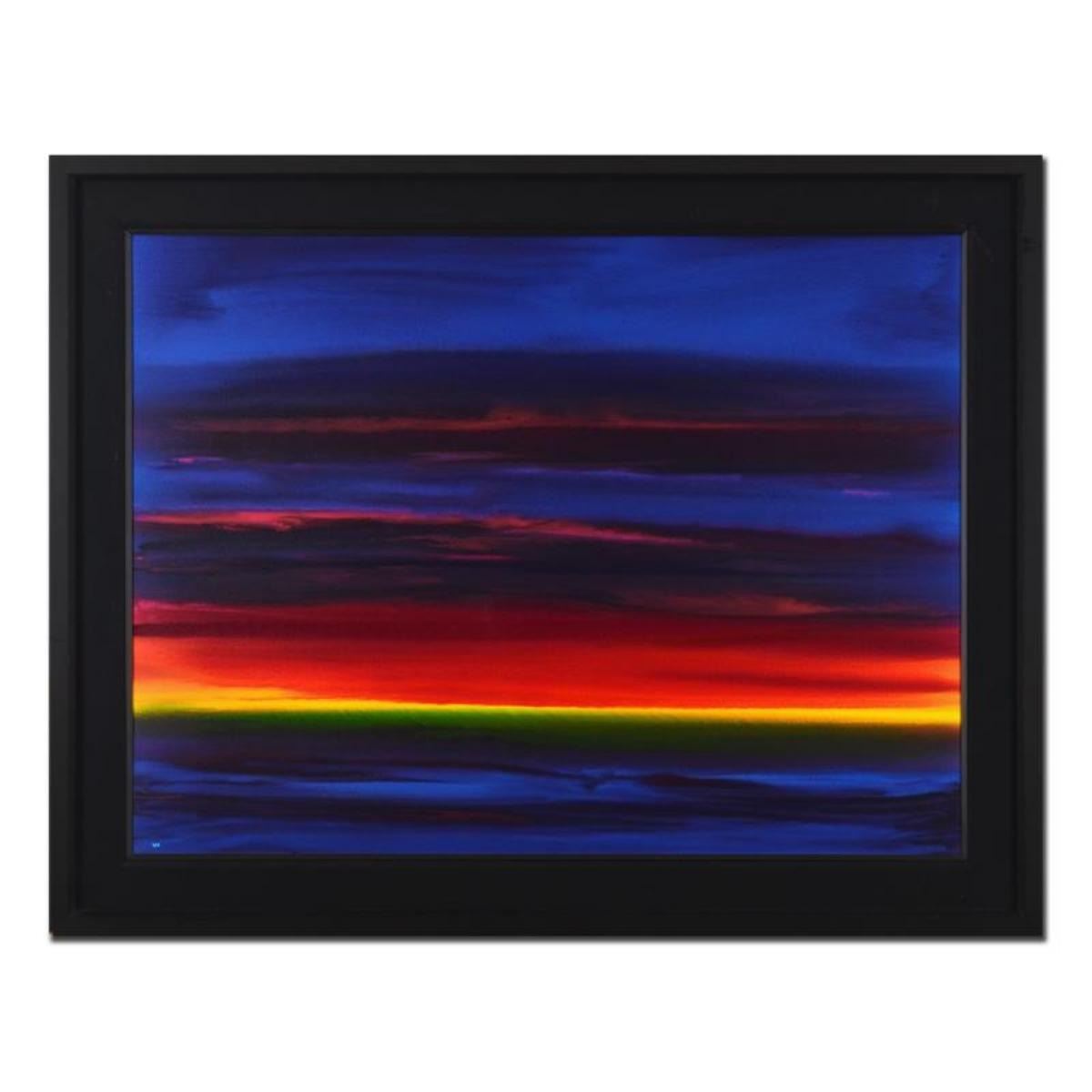 "Green Flash" is a framed original painting on board by Wyland. Hand signed by the artist, this piece comes with a letter of authenticity. Measures approx. 44" x 56" (framed), 36" x 48" (image).