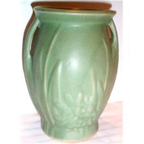 <tr><td>Title:Green Floral Decorated Footed McCoy Vase</td></tr>