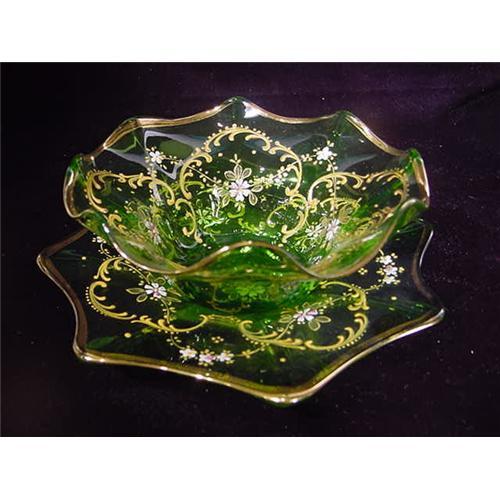 <tr><td>Title:Green Glass Bowl with Under Plate</td></tr>
