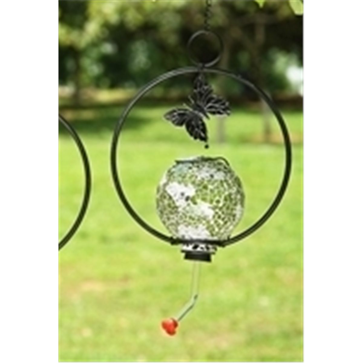 Green Mosaic Glass Hummingbird Feeder - 12"H 8.5"W 4"D - Glass & Aluminum