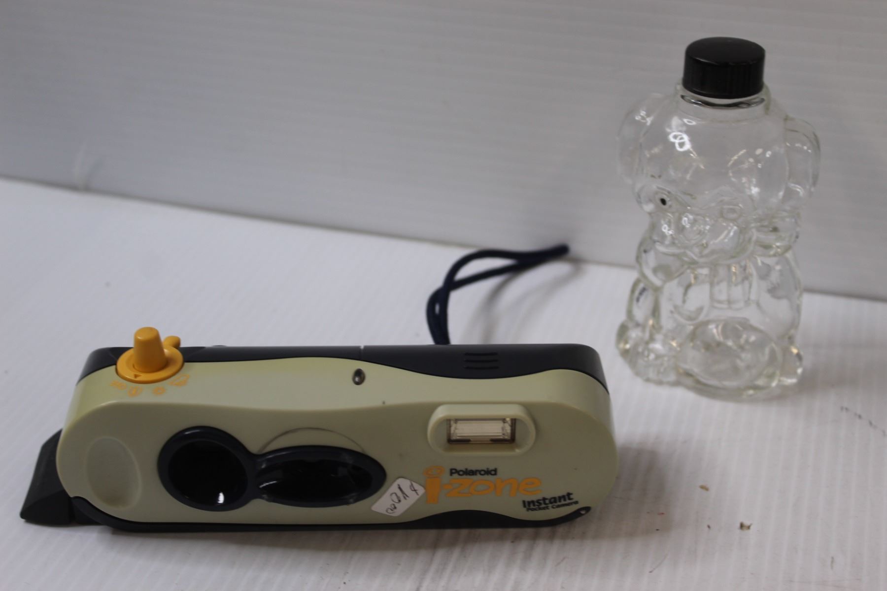 Green Glass Insulator, Federal Coin Bank Bronze Plated Train Car, Polaroid Camera - as is, Meat Grin