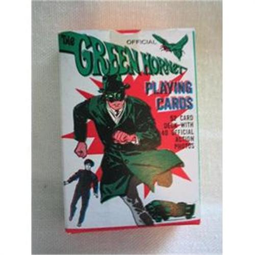 This 52 card deck with 40 official action photos of The Green Hornet Playing Cards is from 1966. The box is marked: 1966 Greenway Productions Inc. Twentieth Century-Fox Telivision Inc. and The Green Hornet Inc. In very good condition, the box does have a tape mark on it, they would make a great addition to any Non Sport, Action Hero or Telivision Card Collection. I have 3 of these decks in stock. Price quoted is for each deck ordered. <BR>SH & Ins. will be quoted after orders placed. If you have questions feel free to contact me and thank you for looking.