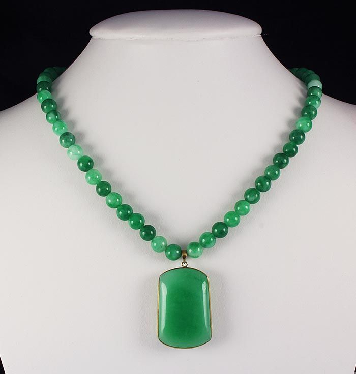 Green Jade Beaded Charm Necklace with Slab Jade Pendant **|**|** Green Jade Beaded Charm Necklace with Slab Jade Pendant 57.40 grams ; MSRP: $200