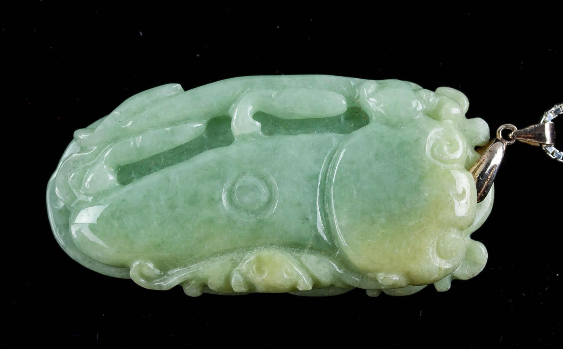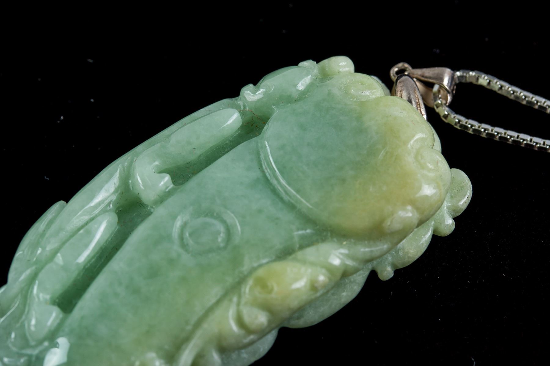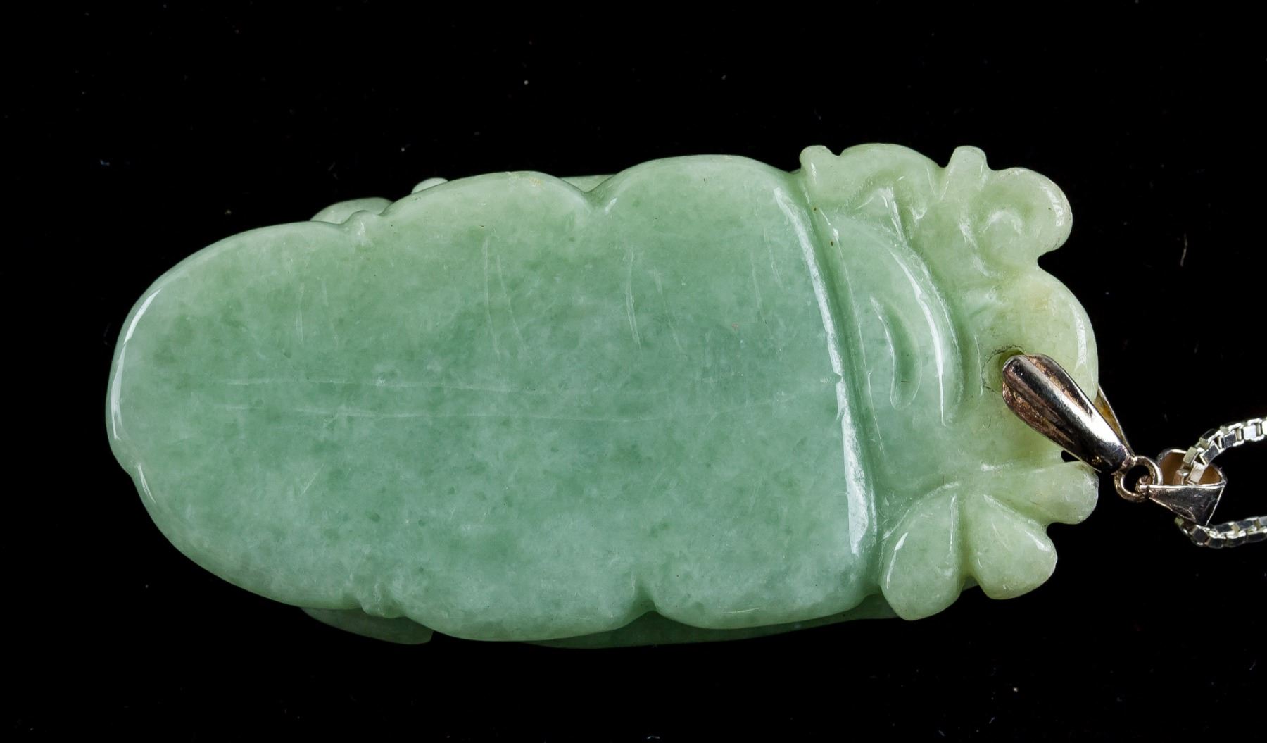 Green jade carved pendant with sterling silver necklace, featuring green jade carved Ruyi form pendant, with 925 sterling silver chain