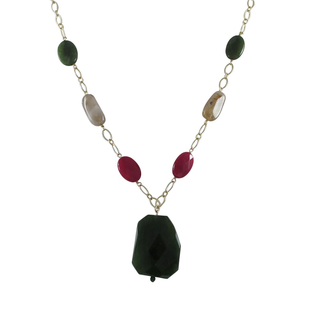 Green Jade Semi Precious Teardrop Stone, Gold Plated Brass Necklace, 20"