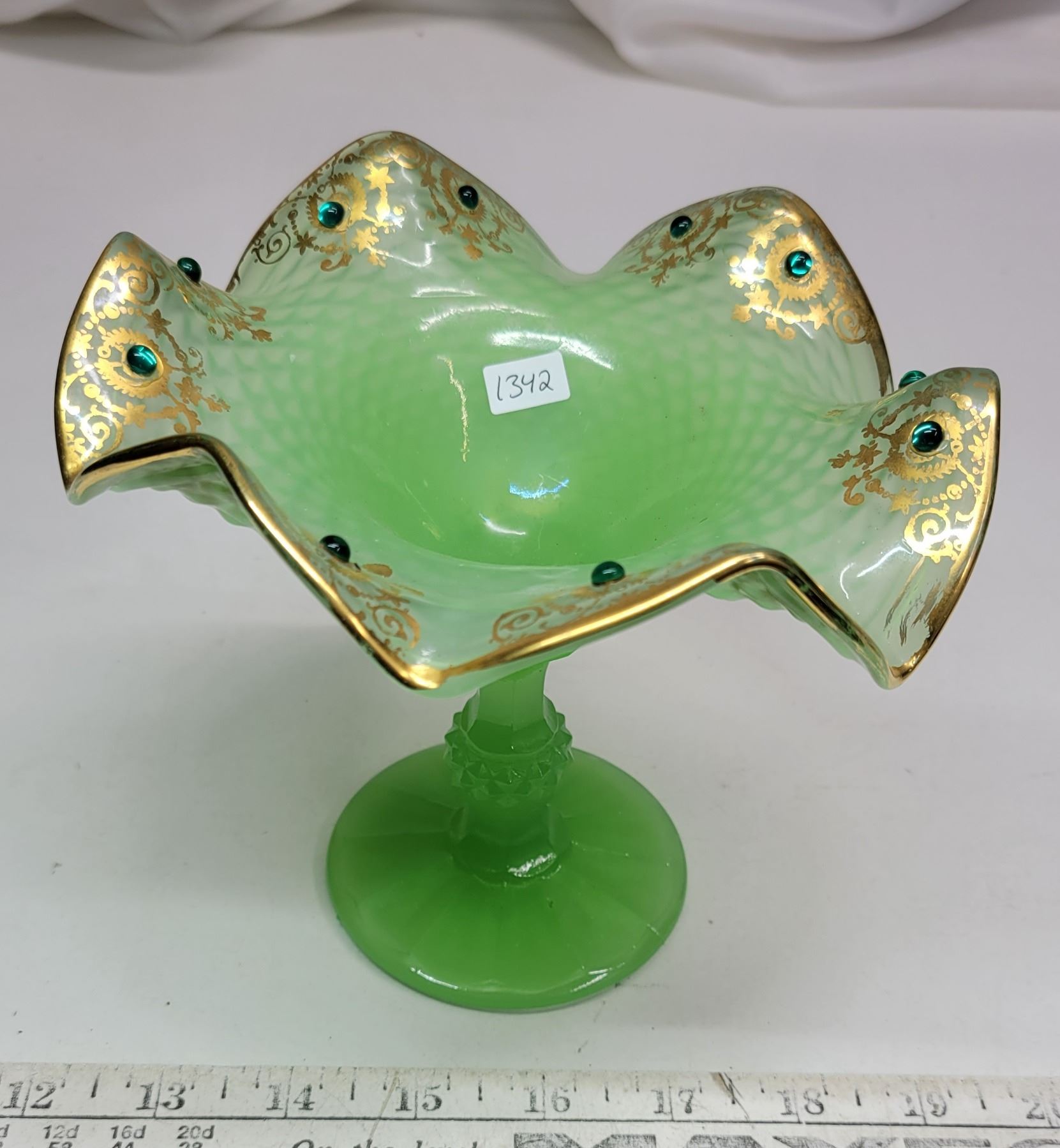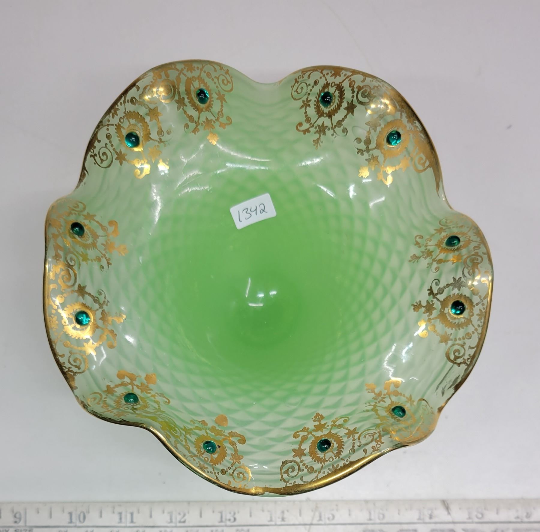 Green Jadite Diamond Pattern Glass
