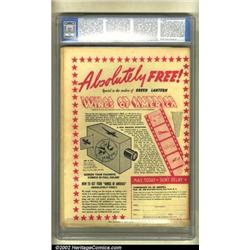 Green Lantern #1 (DC, 1941) CGC FN 6.0 Off-white pages. With a solid black cover rendered by Howard Purcell, this is one of the of the best Green Lantern covers of the Golden Age! This classic #1 issue from DC has always been highly sought-after by collectors. An attractive mid-grade copy with a slight spine roll and minor edge wear, this is a perfect copy for the cost-conscious collector who wants an unrestored copy with a nice appearance. Unrestored copies of Golden Age DC keys are only becoming more and more difficult to find. Overstreet 2002 FN 6.0 value = $8,400. Important notice: We expect to be auctioning lots at the rate of 200-250 per hour. Sometimes eBay Premier live bid software cannot keep up with that pace, so we strongly recommend that you place a realistic proxy bid now as insurance to avoid disappointment. Also please note that all Heritage/CAA lots purchased through eBay Premier carry a 20% Buyer's Premium.