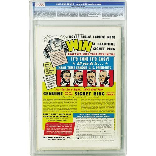 are sold ³as is² without any express or implied warranty. Certain warranties may be available from the grading services and the Bidder is referred to them for further details: Comics Guaranty Corporation (CGC), P.O. Box 4738, Sarasota, FL 34230. Subject to sections 57 and 58, bidders who intend to challenge authenticity or provenance of a lot must notify Auctioneer in writing within thirty (30) days of the Auction¹s conclusion. Auctioneer¹s maximum liability shall not exceed the high bid on that lot, which bid shall be deemed for all purposes the value of the lot. In the event Auctioneer cannot deliver the lot or subsequently it is established that the lot lacks title, provenance, authenticity, or other transfer or condition issue is claimed, Auctioneer¹s liability shall be limited to recission of sale and refund of purchase price. After one year has elapsed, Auctioneer¹s maximum liability shall be limited to any commissions and fees Auctioneer earned on that lot.