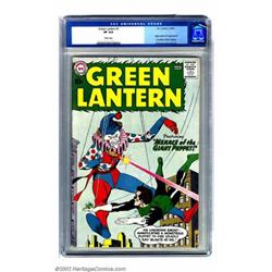 Green Lantern #1 (DC, 1960) CGC VF 8.0 White pages. Flush with the success of the Flash, DC took the lead in the early Silver Age years, reviving and revamping Golden Age superheroes and inventing new ones. This famous cover may be Gil Kane's most memorable, and his work on Green Lantern is arguably his best among many titles throughout DC and Marvel over five decades of sterling output. Quality storytelling and artwork distinguished DC from every other publisher in these early Silver Age years, but Stan Lee's Marvel was a sleeping giant about to awake as the 1960s arrived. Overstreet 2002 VF 8.0 value = $2,000. Important notice: We expect to be auctioning lots at the rate of 200-250 per hour. Sometimes eBay Premier live bid software cannot keep up with that pace, so we strongly recommend that you place a realistic proxy bid now as insurance to avoid disappointment. Also please note that all Heritage/CAA lots purchased through eBay Premier carry a 20% Buyer's Premium. Please make sure you read the Terms and Conditions.