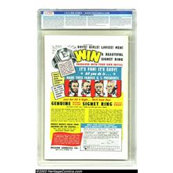 Green Lantern #1 (DC, 1960) CGC VF/NM 9.0 Off-white pages. Flush with the success of the Flash, DC took the lead in the early Silver Age years, reviving and revamping Golden Age superheroes and inventing new ones. Quality storytelling and artwork distinguished DC from nearly every other publisher during this era, but Stan Lee's Marvel was a sleeping giant about to awake as the 1960s arrived. In regards to the comic at hand, this famous cover may be Gil Kane's most memorable, and his work on Green Lantern is arguably his best among many titles throughout DC and Marvel where he had over five decades of sterling output. This premiere key Silver Age book also retells Green Lantern's origin, and is the first appearance of the Guardians of the Universe. Advanced DC collectors know that finding a low- to mid-grade copy of this book is fairly easy, but locating a high-grade example, like this one, is next to impossible. This book is bright and clean, and almost appears unread, with just minor spine and minor edge wear. The pages are superb, and the whole book has a like new feel. Only two copies have managed to eke a higher grade out of CGC to date. Overstreet 2003 VF/NM 9.0 value = $3.122; NM 9.4 $4,200. Important notice: Heritage usually auctions material at the rate of 200-250 lots per hour. On some occasions eBay Live bid software or the Internet may not be able to keep up with the pace of the auction. We recommend placing a realistic absentee bid now as insurance to avoid disappointment. Occasionally the auctioneer may eliminate or reject an eBay Live bid, and the auctioneer may also reopen a lot after the close of the eBay live bidding (usually because we missed an audience bid), and may reject your bid even if it shows you as the winning bidder. By bidding via eBay Live, you agree that Heritage may award the lot to another bidder at its sole discretion under the circumstances described above or any other reasonable circumstances. Also please note that all Heritage lots purchased through eBay Live carry a 20% Buyer's Premium. Please make sure you read the Terms and Conditions before you bid.