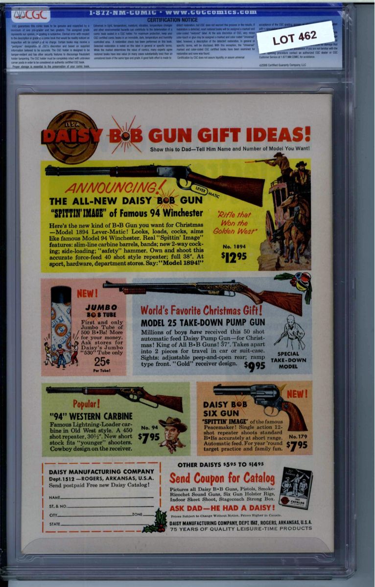 The Auctioneer has reserved the right to reject any and all bids, and to bid at the auction. Auctioneers Auctions are not on approval. Auctioneer does not allow certified material to be returned because of possible differences of opinion with respect to the grade offered by any third party organization, dealer, or service. Absolutely no guarantee of grade is offered for un-certified property sold and subsequently submitted to a third-party grading service. There will be no exceptions to this policy. Under extremely limited circumstances, (e.g. gross cataloging error) a purchaser, who did not bid from the floor, may request Auctioneer to evaluate voiding a sale; such request must be made in writing detailing the alleged gross error, and submission of the lot to the Auctioneer must be pre-approved by the Auctioneer. Bidder must notify Auctioneer in writing of such request within three (3) days of the non-floor bidder receipt of the lot. Any lot that is to be evaluated must be in our offices within 30 days after Auction. Grading does not qualify for this evaluation process nor do such complaints constitute a basis to challenge the authenticity of a lot. AFTER THAT 30-DAY PERIOD, NO LOTS MAY BE RETURNED FOR REASONS OTHER THAN AUTHENTICITY. Lots returned must be housed intact in the original holder. No lots purchased by floor Bidders may be returned (including those Bidders acting as agents for others). Late remittance for purchases may be considered just cause to revoke all return privileges. B: Auctions conducted solely on the Internet have a THREE (3) DAY RETURN POLICY: Lots paid for within seven days of the Auction closing are sold with a three (3) day return privilege. You may return lots under the following conditions: Within three days of receipt of the lot, you must first notify Auctioneer by contacting Client Service by phone (314-680-8599) or e-mail (moundcityauctions@gmail.com), and immediately mail the lot(s) fully insured to the attention of Returns, Mound City Auctions 1081 Teson Rd. Hazelwood, MO. 63042. Lots must be housed intact in their original holder and in their original condition. You are responsible for the insured, safe delivery of any lots. Auctioneer will not be responsible for lots returned in non-registered mail or lots returned without prior authorization per section B. A non-negotiable return fee of 5% of the purchase price ($10 per lot minimum) will be deducted from the refund for each returned lot or billed directly. Postage and handling fees are not refunded. After the three-day period (from receipt), no items may be returned for any reason. Late remittance for purchases revokes all Return-Restock privileges. C: Bidders who have inspected the lots prior to the auction will not be granted any return privileges. D: Comic books sold referencing a third-party grading service are sold “as is” without any express or implied warranty. Certain warranties may be available from the grading services and the Bidder is referred to them for further details: Certified Guaranty Company, LLC. (CGC), P.O. Box 4738, Sarasota, FL 34230. E: Bidders who intend to challenge authenticity or provenance of a lot must notify Auctioneer in writing within thirty (30) days of the Auctions conclusion. In the event Auctioneer cannot deliver the lot or subsequently it is established that the lot lacks title, provenance, authenticity, or other transfer or condition issue is claimed, Auctioneer's liability shall be limited to rescission of sale and refund of purchase price; in no case shall Auctioneer's maximum liability exceed the high bid on that lot, which bid shall be deemed for all purposes the value of the lot. After one year has elapsed, Auctioneer's maximum liability shall be limited to any commissions and fees Auctioneer earned on that lot. F: All comics are guaranteed genuine, but are not guaranteed as to grade, since grading is a matter of opinion, an art and not a science, and therefore the opinion rendered by the Auctioneer or any third party grading service may not agree with the opinion of others (including trained experts), and the same expert may not grade the same item with the same grade at two different times. G: Since we cannot examine encapsulated comics, they are sold “as is”without our grading opinion, and may not be returned for any reason. Auctioneer shall not be liable for any patent or latent defect or controversy pertaining to or arising from any encapsulated collectible. In any such instance, purchaser's remedy, if any, shall be solely against the service certifying the collectible. H: Due to changing grading standards over time, differing interpretations, and to possible mishandling of items by subsequent owners, Auctioneer reserves the right to grade items differently than shown on certificates from any grading service that accompany the items. Auctioneer also reserves the right to grade items differently than the grades shown in the prior catalog should such items be reconsigned to any future auction. I: Although consensus grading is employed by most grading services, it should be noted as aforesaid that grading is not an exact science. In fact, it is entirely possible that if a lot is broken out of a plastic holder and resubmitted to another grading service or even to the same service, the lot could come back with a different grade assigned. J: Certification does not guarantee protection against the normal risks associated with potentially volatile markets. The degree of liquidity for certified collectibles will vary according to general market conditions and the particular lot involved. For some lots there may be no active market at all at certain points in time."