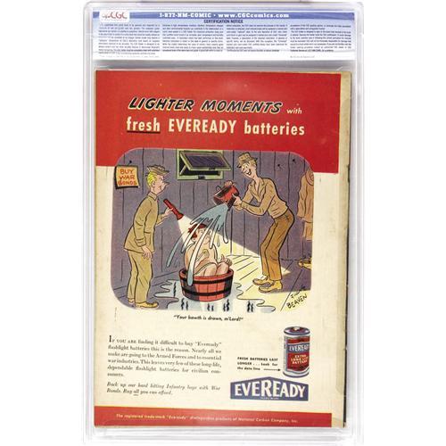 48C. COMICS – Comic books sold referencing a third-party grading service are sold "as is" without any express or implied warranty. Certain warranties may be available from the grading services and the Bidder is referred to them for further details: Comics Guaranty Corporation (CGC), P.O. Box 4738, Sarasota, FL 34230. Subject to sections 57 and 58, bidders who intend to challenge authenticity or provenance of a lot must notify Auctioneer in writing within thirty (30) days of the Auction's conclusion. Auctioneer's maximum liability shall not exceed the high bid on that lot, which bid shall be deemed for all purposes the value of the lot. In the event Auctioneer cannot deliver the lot or subsequently it is established that the lot lacks title, provenance, authenticity, or other transfer or condition issue is claimed, Auctioneer's liability shall be limited to recission of sale and refund of purchase price. After one year has elapsed, Auctioneer's maximum liability shall be limited to any commissions and fees Auctioneer earned on that lot.