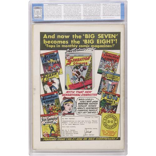 <B>Green Lantern #2 (DC, 1941) CGC VF- 7.5 Off-white pages.</B></I> It's the first book-length Green Lantern story! The hero's all smiles on the Martin Nodell cover, and why not -- pal Doiby Dickles is wielding a mean monkey wrench. The interior art is also by Nodell, GL's creator. While this copy shows some minor wear along the edges, including a quarter-inch tear on the lower front cover, it remains a very clean, flat, and solid-looking example. Overstreet 2006 VF 8.0 value = $4,669. CGC census 3/07: 2 in 7.5, 3 higher. <BR><BR><b>Shipping:</b> Slabbed Comic (<a target="_blank" href="http://www.heritageauctions.com/common/shipping.php">view shipping information</a>)