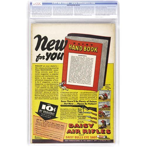 <B>Green Lantern #20 Davis Crippen ("D" Copy) pedigree (DC, 1946) CGC VF 8.0 Off-white to white pages.</B></I> There's a neat little gag on Paul Reinman's cover in that the boat is named "Goitrude II" - you might recall that Doiby Dickles is a cabdriver by trade, and that "Goitrude" is the name of his beloved taxi. Inside the comic, there's an appearance by the Gambler, who obviously doesn't know when to fold 'em, because he takes another crack at GL. Overstreet 2006 VF 8.0 value = $844. CGC census 6/06: 1 in 8.0, 4 higher. <I>From the Crippen Collection.</B></I> <BR><BR><B>Important notice:</B> Heritage usually auctions material at the rate of 200-250 lots per hour. On some occasions eBay Live bid software or the Internet may not be able to keep up with the pace of the auction. We recommend placing a realistic absentee bid now as insurance to avoid disappointment. Occasionally the auctioneer may eliminate or reject an eBay Live bid, and the auctioneer may also reopen a lot after the close of the eBay live bidding (usually because we missed an audience bid), and may reject your bid even if it shows you as the winning bidder. By bidding via eBay Live, you agree that Heritage may award the lot to another bidder at its sole discretion under the circumstances described above or any other reasonable circumstances. Since eBay bids are not shown to us until we open the lot on the floor, we treat those bids just like floor bids. In most cases the floor responds before the eBay bid is presented to us, due to Internet lag time, so for consistency we have made it a policy that floor bids are always considered first over tie eBay live bids. Also please note that all Heritage lots purchased through eBay Live carry a 22.5% Buyer's Premium. Please make sure you read the Terms and Conditions before you bid. This lot is being auctioned in conjunction with a live floor auction by Heritage Auction Galleries. All final auction and invoice information will be supplied by Heritage Auction Galleries, and all other information should be considered preliminary. Lot:41001 <BR><BR><B>Winning Notification and Billing:</B> After the FINAL session in this auction is complete, Heritage will send e-mail and snail mail invoices. This process normally takes several days. All final auction and invoice information will be supplied by Heritage Auction Galleries, and all other information should be considered preliminary. <BR><BR>This auction will be conducted on a live auction floor and over the Internet through eBay Live. If you choose to place an absentee bid, please take a moment to <font color='#0000ff'><u><a href='http://pages.ebay.com/liveauctions/help/before/laabsentee.html'>learn how eBay Live absentee bidding works</a></u></font><font color='#000000'>